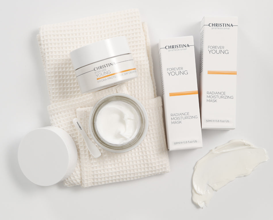 Forever Young protege, rejuvenece e impulsa la salud y apariencia juvenil de la piel perdida con el avance del envejecimiento y los daños ambientales, mediante una combinación de bio-péptidos, productos botánicos y antioxidantes, fomentando la reparación y regeneración celular.