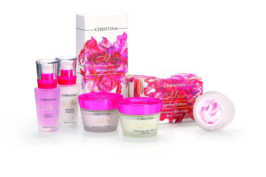 El tratamiento y los productos Muse combinan los delicados placeres de la rosa junto con fórmulas científicas galardonadas. Muse aborda las causas y síntomas del deterioro de la calidad y el estado de la piel con un tratamiento eficaz que desintoxica, nutre y rejuvenece. Muse: la fórmula de Christina para una piel más bella y de aspecto más joven durante más.